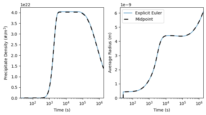 47 plotPrecipitateDensity(modelEuler, ax=ax[0], label='Explicit Euler', alpha=0.75)