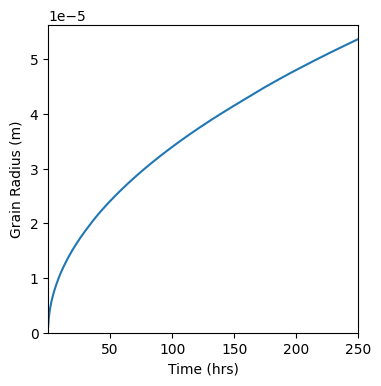 38 plotRadiusvsTime(grainModel, ax=ax, timeUnits='h')